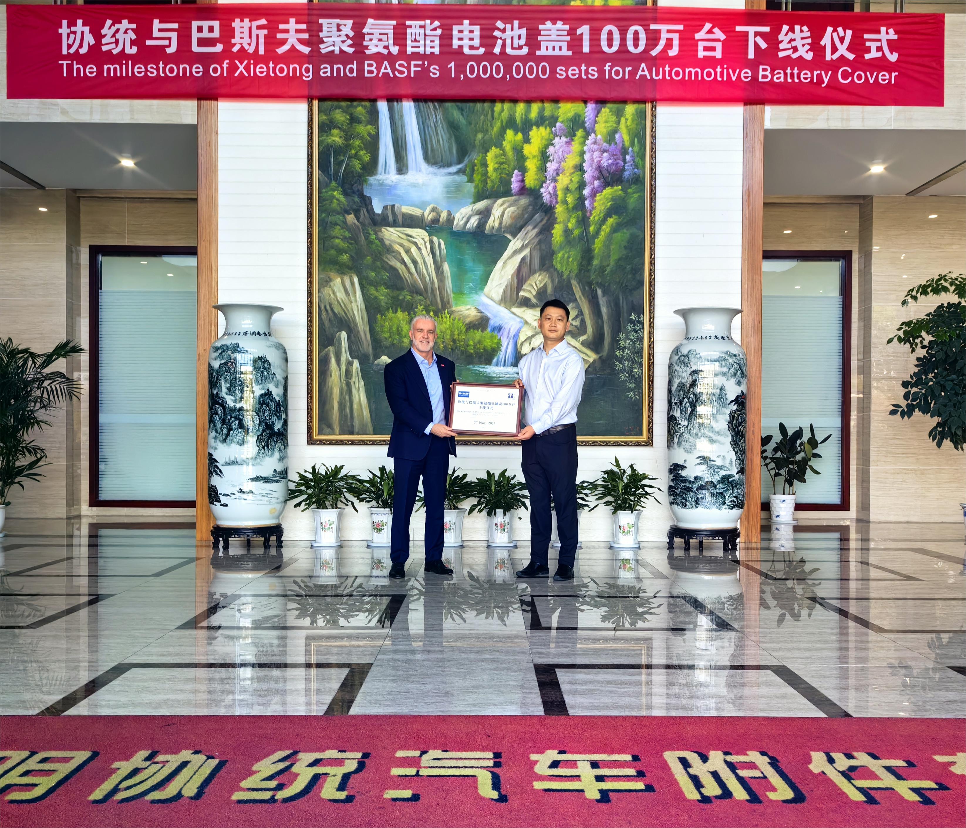 巴斯夫高級副總裁說:“很高興與江陰協(xié)統(tǒng)一起慶祝我們100萬套汽車電池蓋下線里程碑!我們非常榮幸能與協(xié)統(tǒng)合作生產(chǎn)聚氨酯STM復(fù)合材料電池蓋。巴斯夫與協(xié)統(tǒng)首創(chuàng)的STM工藝電池盒蓋不僅耐用、機(jī)械性能高,而且還能實(shí)現(xiàn)車輛輕量化,從而提高能源效率并減少二氧化碳排放。感謝協(xié)統(tǒng)將我們評為核心供應(yīng)商。我們期待與江陰協(xié)統(tǒng)更多更深入的創(chuàng)新與合作!”
